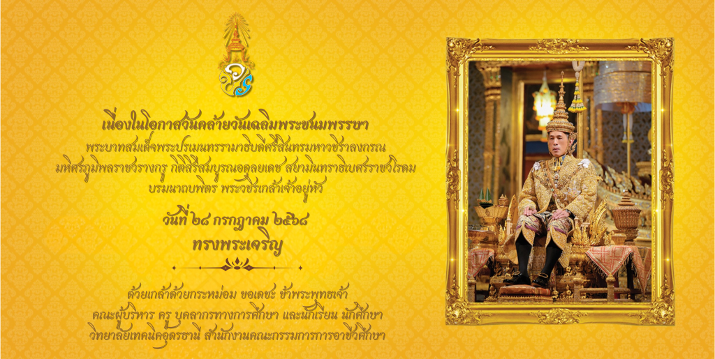 ขอเชิญร่วมลงนามถวายพระพรเนื่องในโอกาสวันเฉลิมพระชนมพรรษา พระบาทสมเด็จพระวชิรเกล้าเจ้าอยู่หัว วันที่ ๒๘ กรกฎาคม ๒๕๖๘